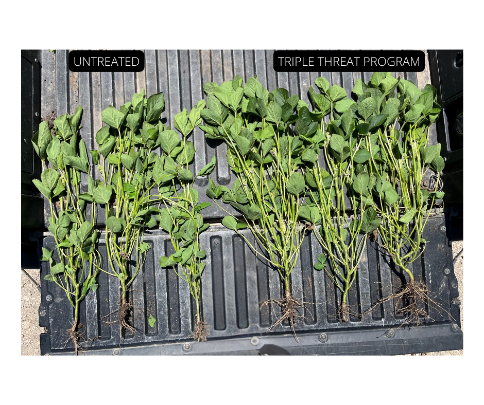 At R2-R4, evaluate flower and pod set compared to untreated. If you see 25-50%, more flowers and pods then: